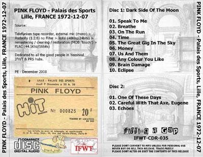 Then, on his website, I saw a date which intrigued me : Pink Floyd 1972-07-12,Lille.