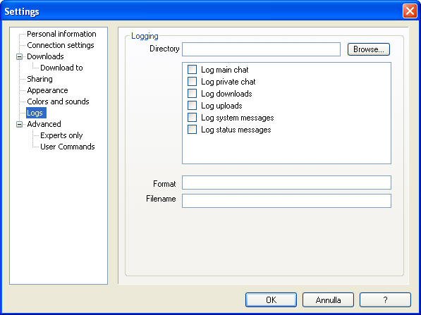 Here yopu can save main chat,private chat,uploads logs etc. There's a guide inside DC++ about this option