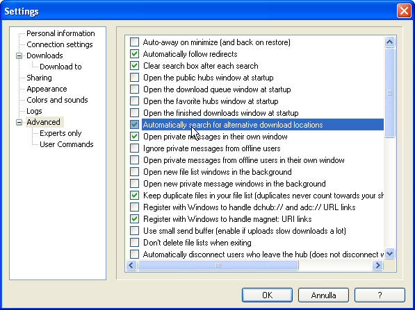 Check this option for an automatic search for alternative download or source (sometimes TTH search is very important to find the same exactly file)